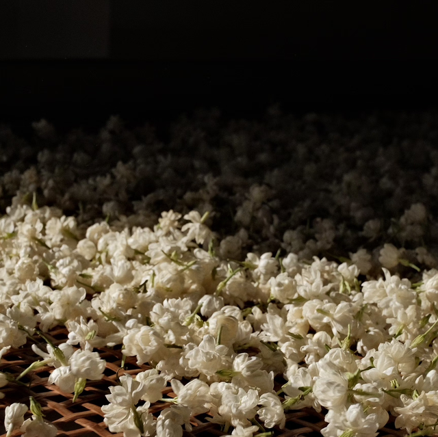 Le processus d’enfleurage est minutieux : les bourgeons de thé vert sont exposés à plusieurs reprises aux pétales fraîchement cueillis, qui imprègnent progressivement les feuilles de leurs arômes délicats et complexes.